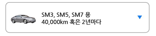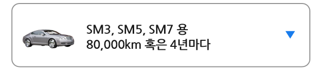 SM3와 구형 SM5 LPG차량은 매 20,000Km 혹은 1년마다 교환, 구형 SM5 가솔린 차량과 New SM5는 매 100,000Km 혹은 5년마다 교환,SM7은 매 100,000Km 혹은 5년마다 교환
